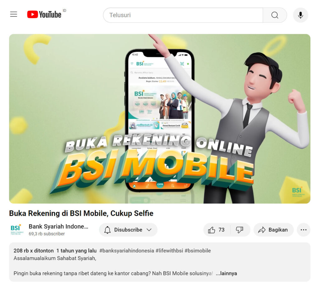 Bank Syariah Indonesia wants a video that makes it easy for the public to register as a customer of Bank Syariah Indonesia through the BSI mobile application for data verification without having to visit a branch office.